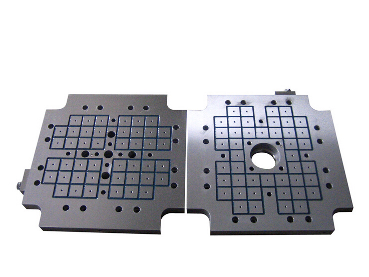 The magnetic template is made of whole steel plate processed on special CNC, which is more compact, rigid and firm. A special imported epoxy resin magnetic coil and magnet with high temperature and dynamic resistance are used to seal the magnetic template. The sealing height is slightly lower than the surface of the magnetic pole to avoid air gap between the mould and the magnetic template when the temperature rises too high. Fixed holes and die ejection holes for mounting and moving die-side are drilled on the magnetic template, and positioning rings are equipped for rapid positioning of the die. The junction box of the magnetic template is arranged in the interior to avoid damage, and has the characteristics of waterproof and high impedance. The rectangular steel plate expands to a large area around the magnetic pole, which can increase the contact area between the magnetic template and the die, and make the fixing of the die more stable.