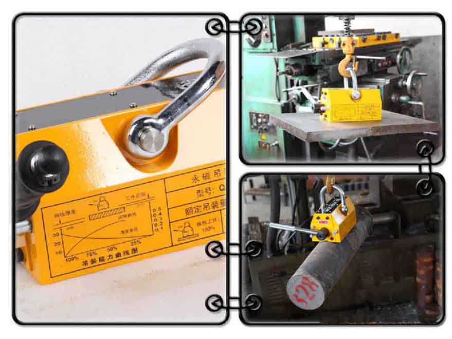 High-performance magnetic materials are used to make it smaller, lighter and stronger. Unique magnetic circuit design, remanence is almost zero. The maximum pull-out force is 3.5 times the rated lifting gravity. The handle switch is equipped with safety button, which can be operated by one hand and is convenient and safe. The bottom of the crane has a V groove design, which can hoist the corresponding round steel and steel plates. No electricity, permanent magnetic force, safe use. It can be widely used for lifting and transporting of steel, leveling of mechanical parts, and installation and transporting of various abrasives in the field.