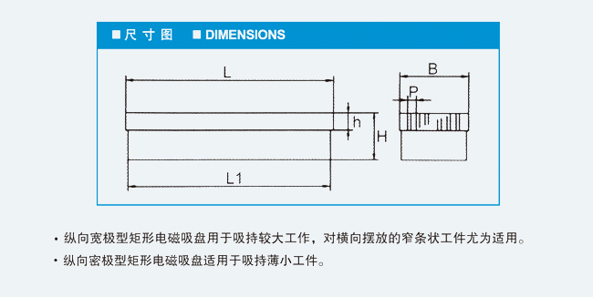 | 产品名称:纵向强力型电磁吸盘/纵向密极型电磁吸盘 |