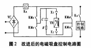 图中VC为整泷装置;KM5、KM6为两台接触器的主触头;RC为放电回路;YH为电磁吸盘线罔;X2为插接器;KA为欠电压继电器。